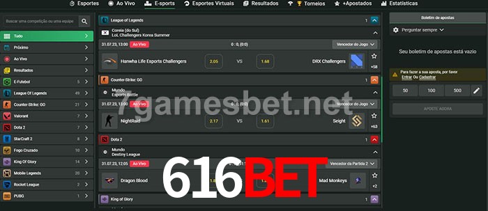 O 616Bet oferece uma grande seleção de opções de apostas em e-sports com probabilidades competitivas